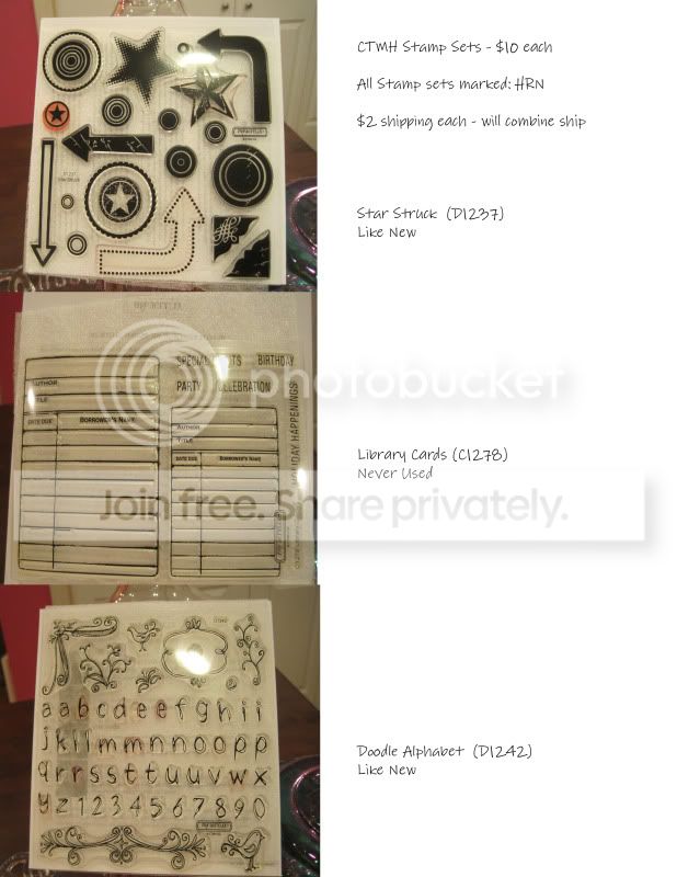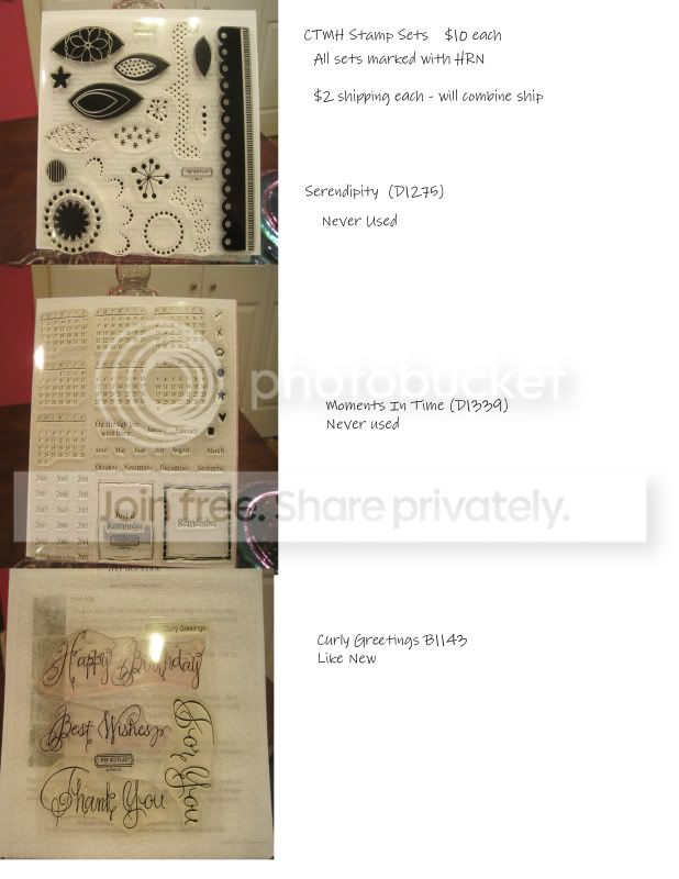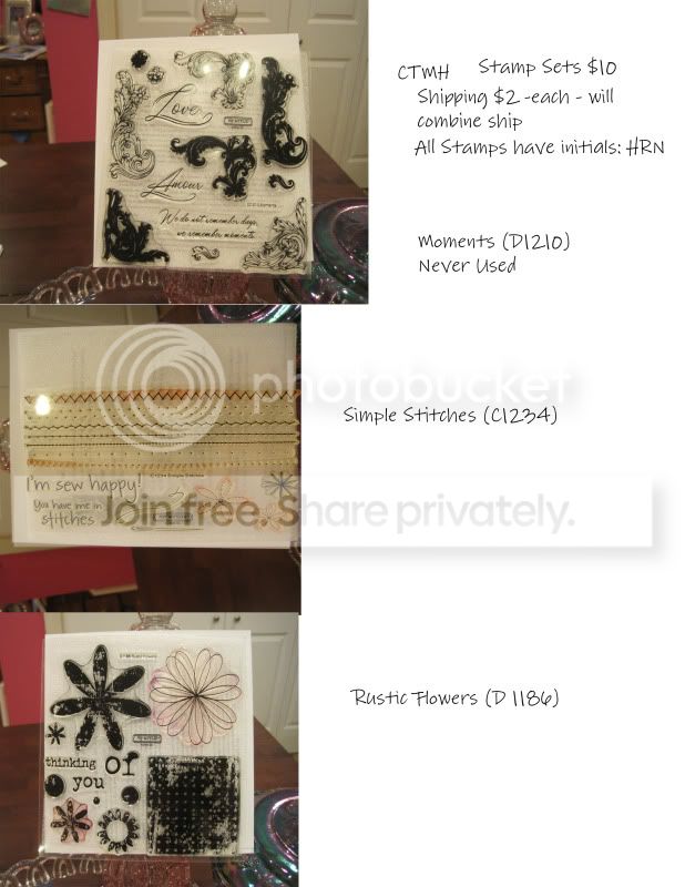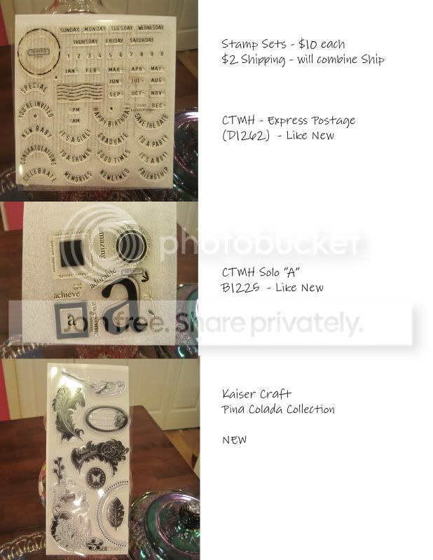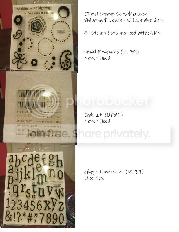 Hey All! I am clearing out my stash - most are brand new or used literally - ONCE!! (*blush*) I need to make some room in my cabinets